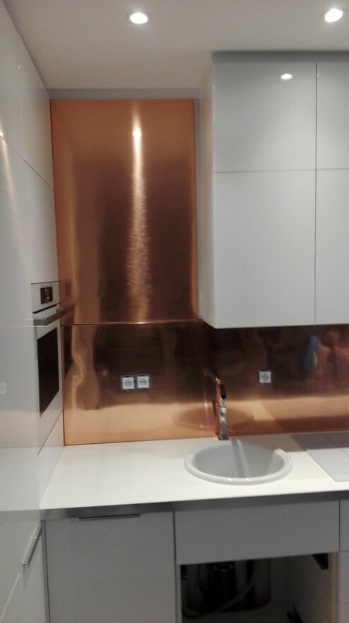 Panele miedziane wzór marmurek idealne do wykończenia miejsc między szafkami kuchennymi czy obudowa kominka w salonie. Inne zastosowanie także jako panel ozdobny ścienny czy sufitu w salonie lub przedpokoju.Wiele zastosowań ! Bardzo bogaty efekt wizualny .
